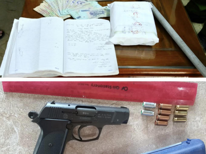 Tại hiện trường, cơ quan Công an đã thu giữ hơn 26 triệu đồng, 1 cây đao tự chế, 1 khẩu súng bắn đạn cao su và một số sổ sách, tài liệu có liên quan.
