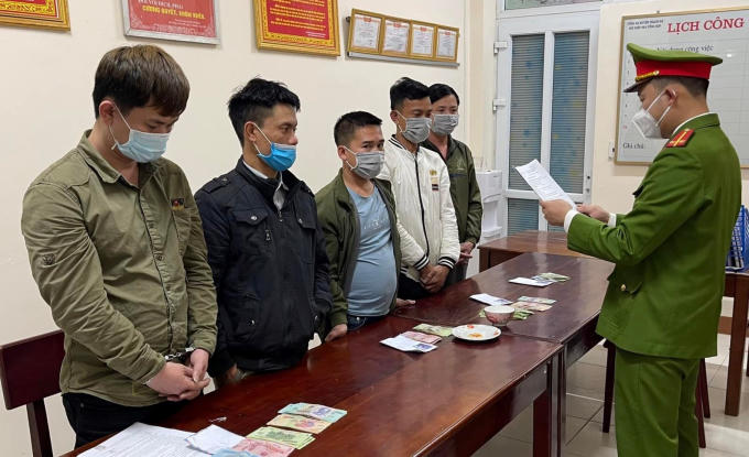 Theo đó, qua quá trình trinh sát, vào khoảng 20h ngày 8/3, Công an huyện Thạch Hà phát hiện, bắt quả tang một nhóm đối tượng đang tụ tập đánh bạc ngay bên đường thuộc địa phận thôn Vĩnh Sơn, xã Đỉnh Bàn, bằng hình thức “xóc đĩa”. Các đối tượng gồm: Nguyễn Vi Ét (SN 1989), Hoàng Văn Bun (SN 1992), Nguyễn Văn Hoàng (SN 1989), Lưu Văn Chiên (SN 1972) và Hoàng Văn Tiệp (SN 1989, cùng trú tại xã Đỉnh Bàn).