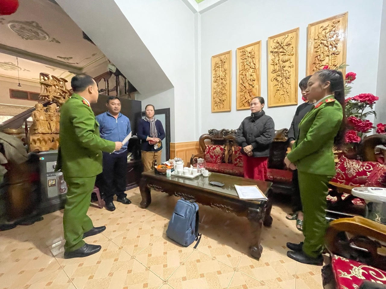 Công an tiến hành thủ tục khám xét tại nhà đối tượng Hoàng Thị Thanh Thủy (Ảnh:Công an Lai Châu)