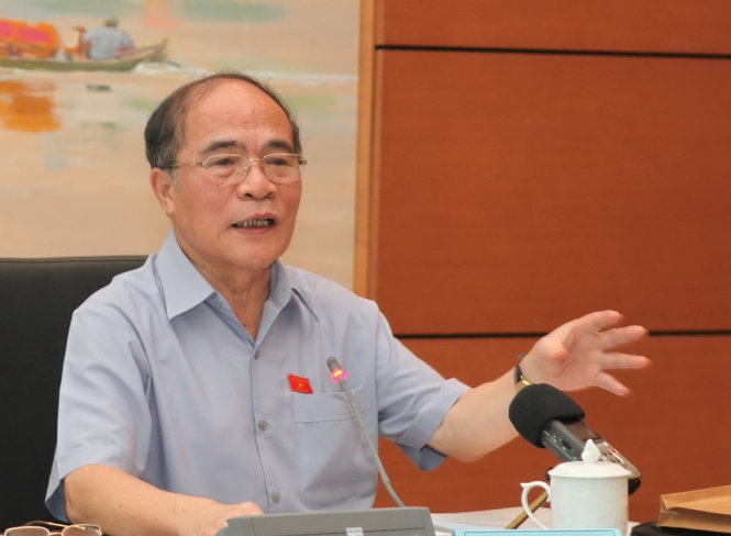 | Chủ tịch Quốc hội Nguyễn Sinh Hùng phát biểu tại cuộc họp. |