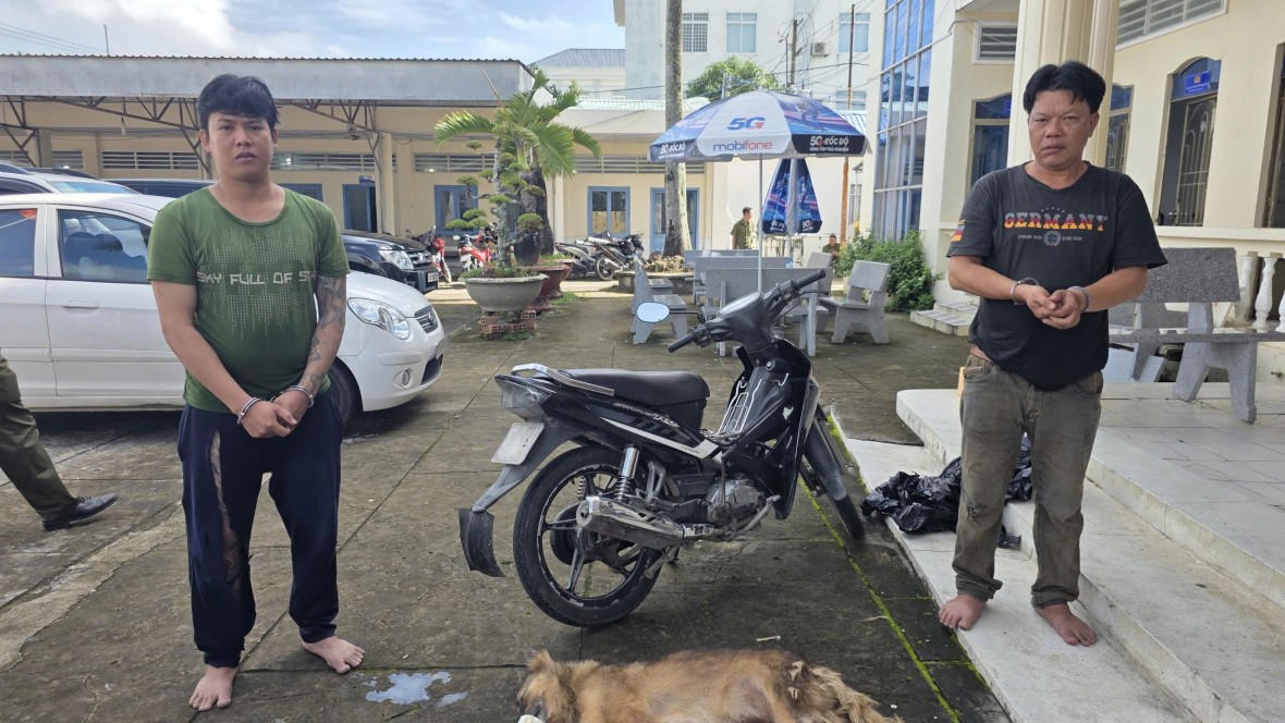 Tang vật thu giữ từ các đối tượng gồm: 04 con chó (con nhỏ nhất có trọng lượng 10kg, con to nhất nặng 21kg), 01 chiếc xe mô tô nhãn hiệu Sirius, biển kiểm soát 68S3-5437, cùng 01 bộ súng điện tự chế và các dụng cụ hỗ trợ.