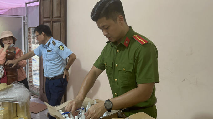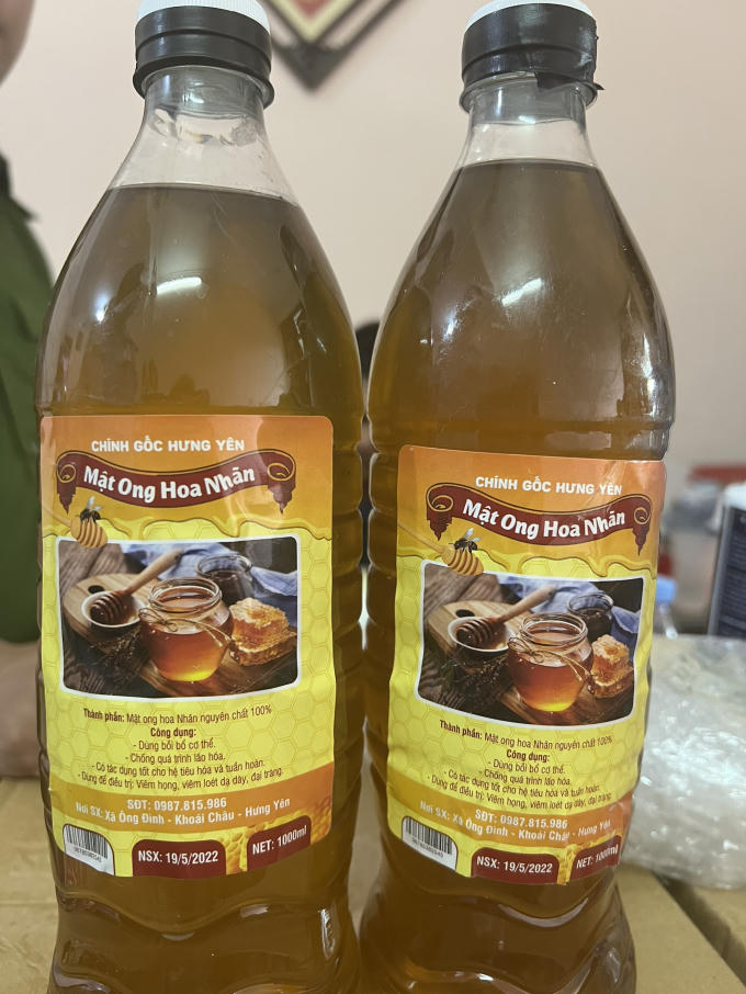 Kiểm đếm thực tế, lực lượng chức năng ghi nhận hơn 2.000 lít mật ong Hương Nhãn đã được đóng gói thành phẩm. Trên nhãn hàng hoá ghi công dụng là bồi bổ cơ thể chống quá trình lão hoá cho hệ tiêu hoá và tuần hoàn. Dùng để Điều trị viêm loét dạ dày, tá tràng. Nơi sản xuất thể hiện trên nhãn là xã Ông Đình, Khoái Châu, Hưng Yên.