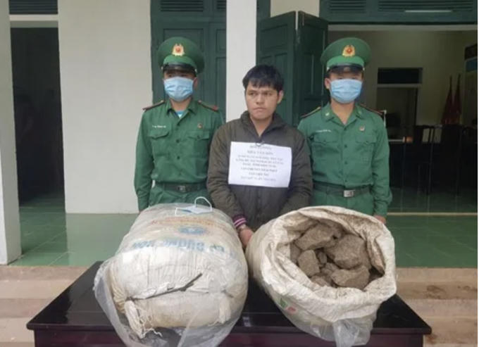 Đối tượng Kha Văn Són và tang vật. (Ảnh: báo Biên phòng)