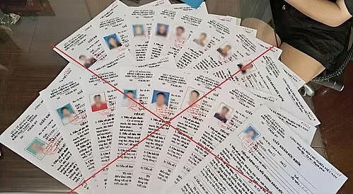 Ngay sau đó, lực lượng công an tiếp tục bắt quả tang T.T.M.L. (50 tuổi, ở xã Phước Thái) cũng có hành vi làm giả các loại giấy tờ, tài liệu của cơ quan, tổ chức.
