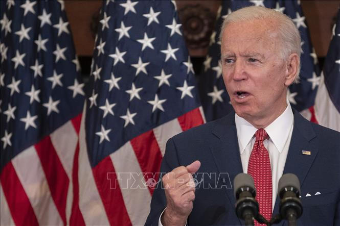 Ứng viên tranh cử Tổng thống Mỹ của đảng Dân chủ, cựu Phó Tổng thống Joe Biden phát biểu tại Tòa thị chính Philadelphia, Pennsylvania ngày 2/6/2020. Ảnh: AFP/TTXVN
