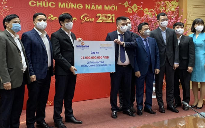 "LienVietPostBank và Thaiholdings rất vinh dự được đi tiên phong ủng hộ 21 tỉ đồng mua Vaccine nhằm góp một phần công sức, chung tay cùng Chính phủ đặt mua hàng loạt lô Vaccine đầu tiên để tiêm phòng cho những lực lượng đang ở tuyến đầu chống dịch như các bác sĩ, nhân viên y tế, lực lượng vũ trang… yên tâm làm việc, góp sức cùng các đơn vị khống chế, tiến đến đẩy lùi dịch COVID- 19" - bầu Thụy - đại diện Cổ đông lớn của LienVietPostBank và Thaiholdings phát biểu.