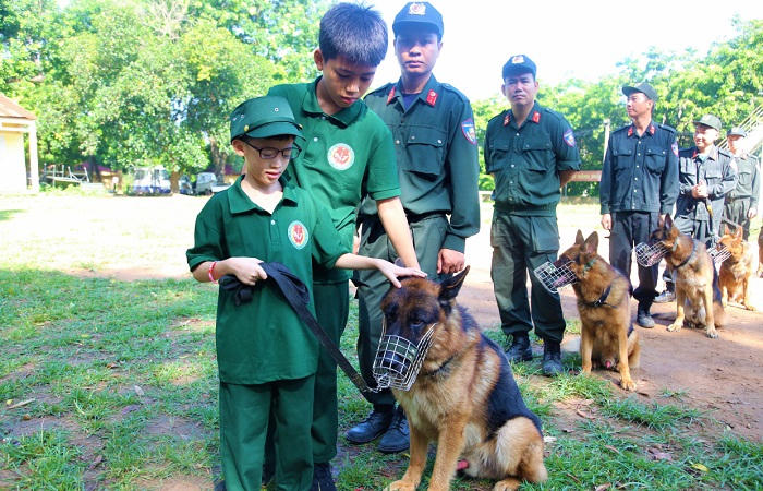 Trong chương trình, các con cũng đã được tổ chức đi tham quan Trung tâm Huấn luyện và sử dụng động vật nghiệp vụ, thuộc Bộ tư lệnh cảnh sát cơ động Bộ Công an.