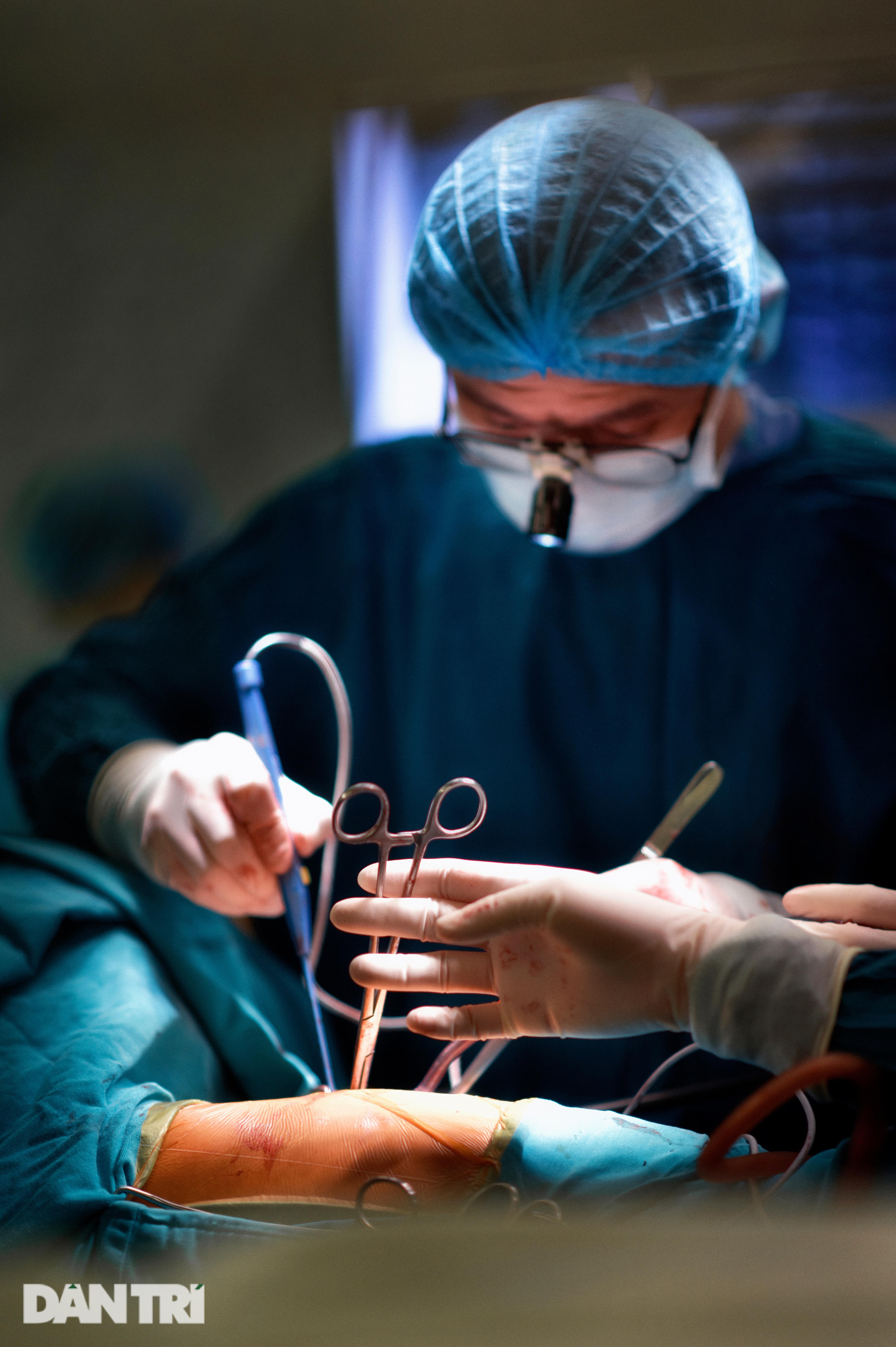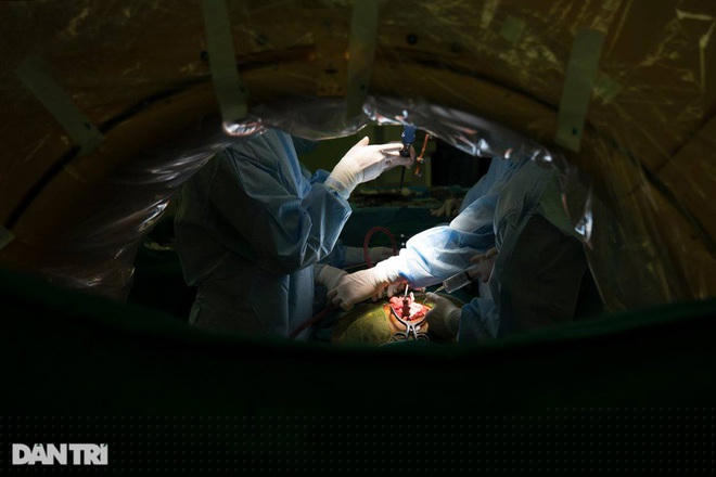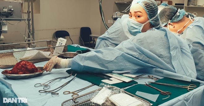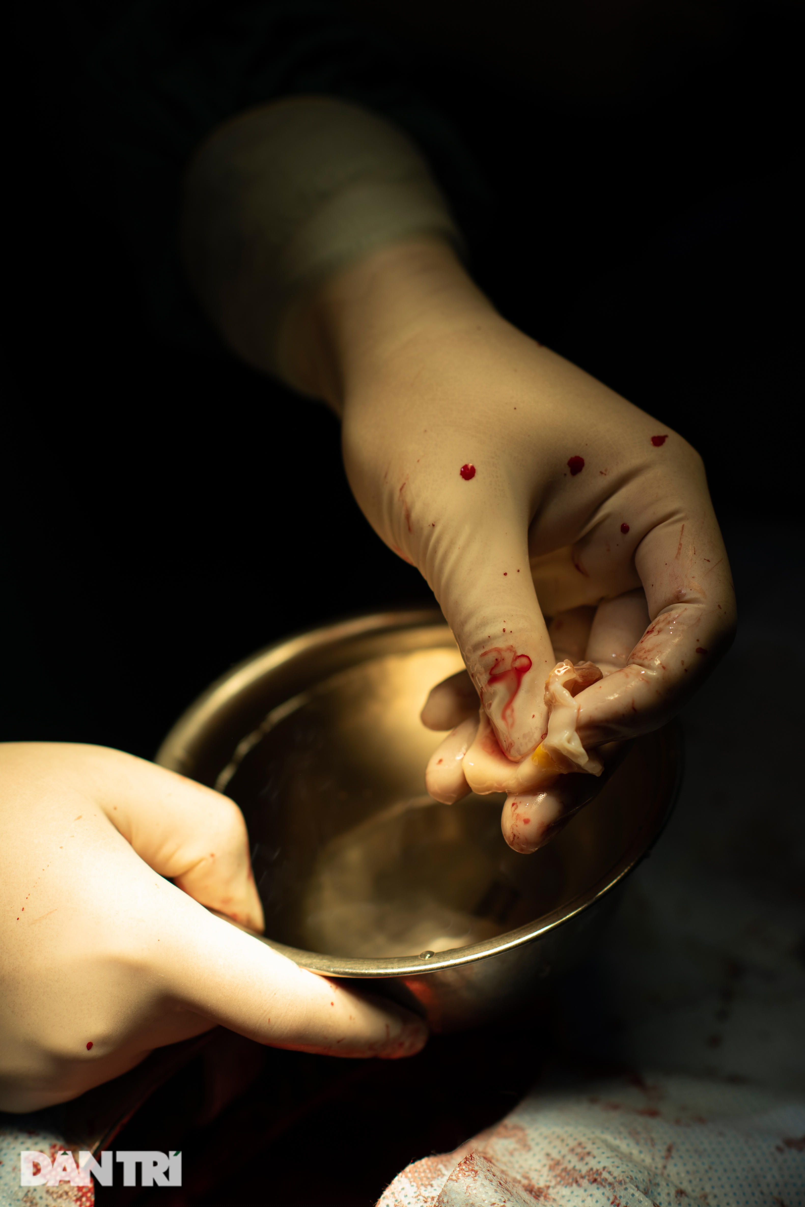 Trong không gian tĩnh mịch ấy chỉ nghe thấy tiếng "leng keng" của dụng cụ dao kéo, tiếng ra hiệu rất khẽ của phẫu thuật viên.