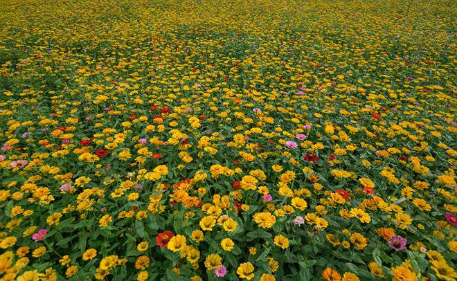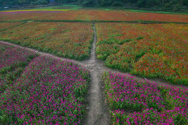 Các giống hoa cúc được trồng xen kẽ với nhau tạo nên những thảm hoa nhiều màu sắc trong thung lũng.