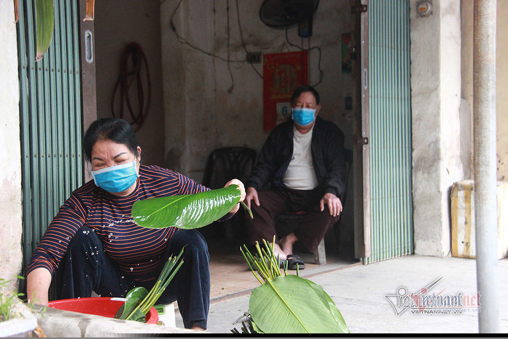 Rửa từng cái lá dong, bà Chỉ trầm tư nói, mọi năm nhà bà gói gần 30 chiếc bánh chưng để cho họ hàng và con cháu từ xa về ăn Tết. Năm nay bà chỉ gói 7-8 cái để thờ và ăn dần.