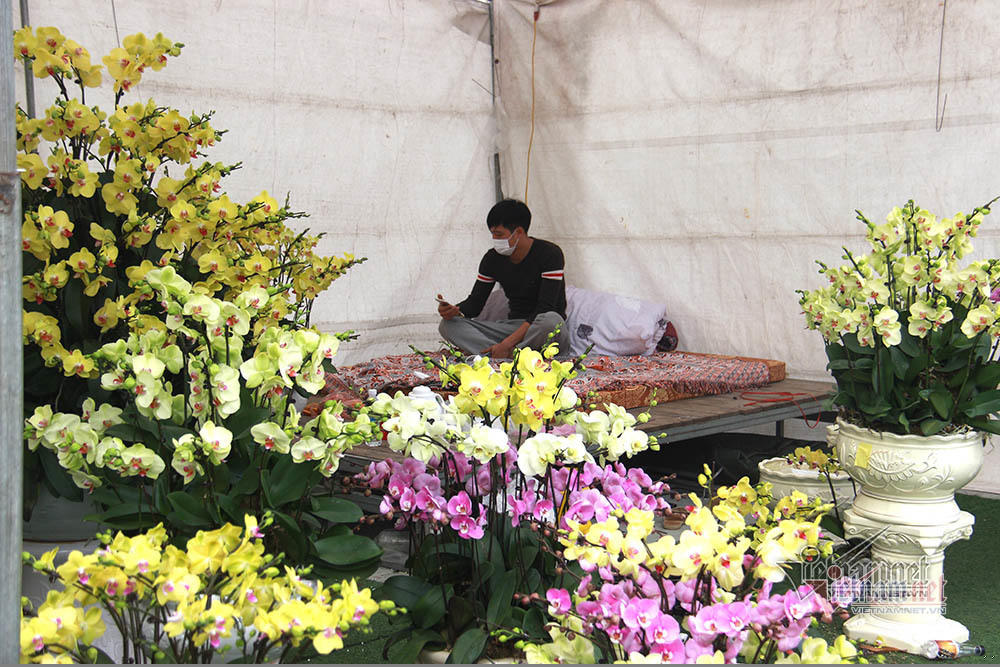Ngồi trong lều bán hoa lan, anh Trương Văn Linh (SN 1989, quê huyện Nam Sách) cho biết, gian hàng đã bày được 3 ngày nhưng vẫn chưa bán được chậu nào vì không có người mua.