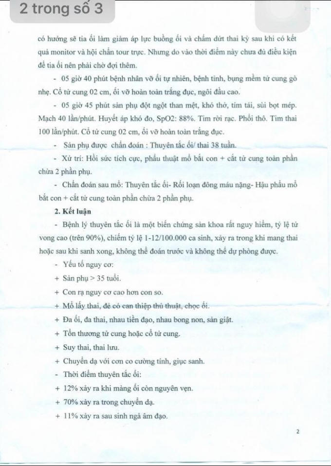 Một điểm có thể thấy rõ là từ 5h30 sáng, khi sản phụ có dấu hiệu nguy kịch thì ekip mới được chuyển sản phụ vào phòng mổ. Điều này khá mâu thuẫn với nội dung bản “Tóm tắt hồ sơ bệnh án” do bệnh viện thông báo ngày 28/7, có nói rằng vào ngày 1/7, ekip có hội chẩn và ra phương án mổ bắt con cho sản phụ.