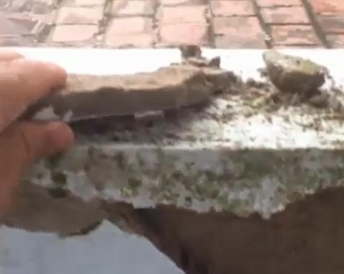 Theo đó, toàn bộ video clip này đặc tả lại cảnh chỉ cần dùng tay, gõ nhẹ vào những bức tường là có thể dễ dàng bóc ra những mảng vữa lớn.