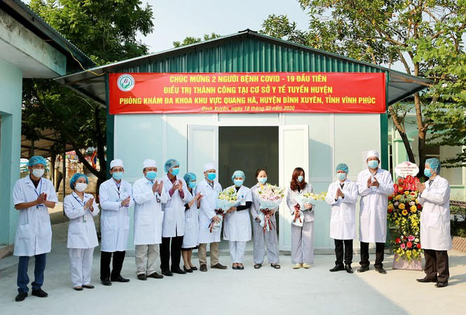 Chiều 18/2, hai bệnh nhân Covid - 19 tại phòng khám đa khoa khu vực Quang Hà, huyện Bình Xuyên tỉnh Vĩnh Phúc bước ra khỏi phòng điều trị trong sự vui mừng của người thân và đội ngũ y bác sĩ huyện Bình Xuyên. Đây là 2 trường hợp đầu tiên được điều trị thành công Covid - 19 tại cơ sở y tế tuyến huyện.