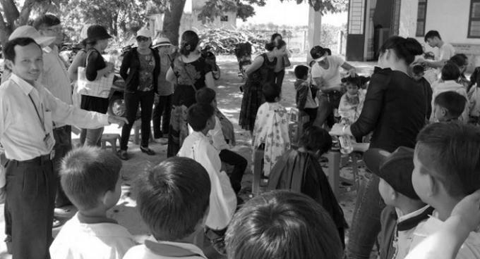 Thấy chúng tôi gật đầu, chị liền bảo:“Ở xã này ai mà chẳng biết thầy Khoa. Thầy ấy tốt bụng lắm! Thầy biết đồng bào chúng tôi khó khăn, trẻ em không được ăn no để đến trường nên thầy đem cả gia tài của mình ra để lo bữa ăn cho học trò.