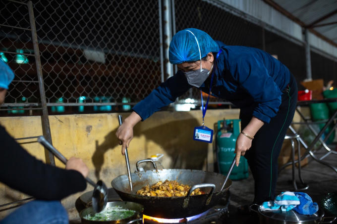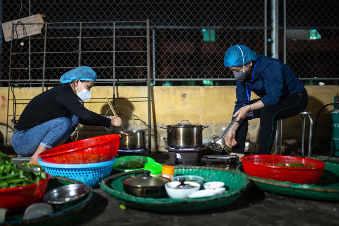 Tất cả vật dụng trong bếp đều là đi mượn, để thực hiện đúng nguyên tắc phòng dịch nên đồ ăn đều do nhà bếp tự lấy chuyển đến mọi người.