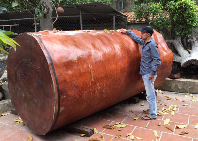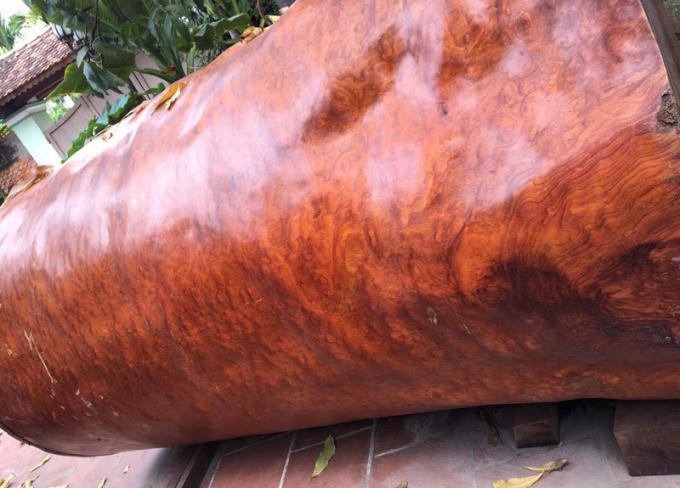 Khúc gỗ nu Gõ đỏ dài 3m, đường kính ngọn 1,5m, đường kính gốc 1,8m, được một đại gia Hải Phòng trả giá gần 4 tỷ đồng nhưng chủ nhân của nó vẫn chưa đồng ý bán.