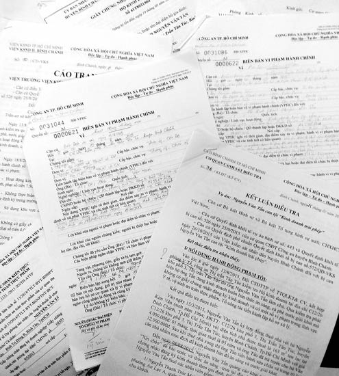 | Các biên bản xử phạt vi phạm hành chính, kết luận điều tra vụ án của Công an huyện Bình Chánh và cáo trạng của Viện KSND huyện Bình Chánh đối với quán phở của anh Nguyễn Văn Tấn. |
