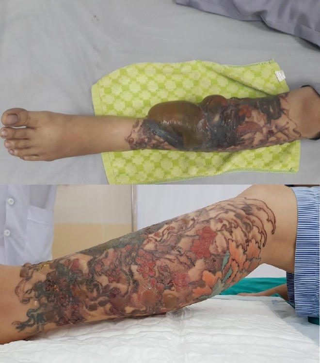 Bị hoại tử chân sau khi xóa hình xăm