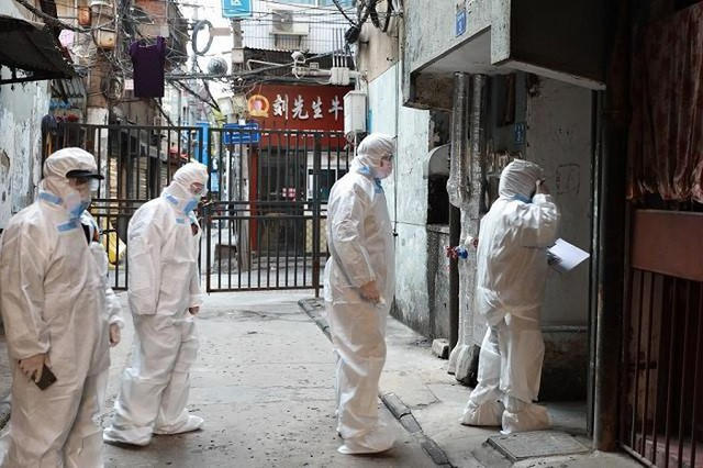 Đội ngũ y tế mặc đồ bảo hộ tới từng nhà ở thành phố Vũ Hán để kiểm tra, phát hiện người nhiễm bệnh và bị nghi nhiễm bệnh. Ảnh: China Daily.