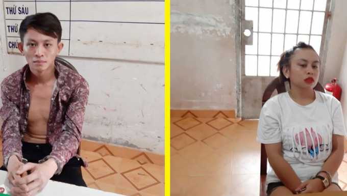 Kha Thị Trí Mỹ và Phàm Chí Cường tại cơ quan công an.