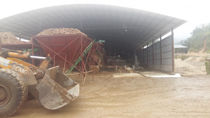 | Sắn nguyên liệu được tập kết ngay trên sân. |
