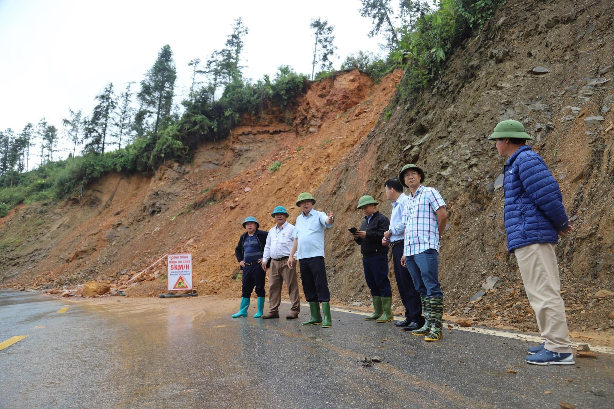 Đoàn công tác đã đi kiểm tra các vết nứt tại các điểm sạt lở trên quốc lộ 4D thuộc địa phận các phường Phan Si Păng, phường Hàm Rồng và số nhà 228 đường Điện Biên Phủ thuộc phường Hàm Rồng bị ngập do mưa lớn.