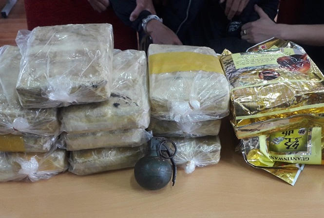 Bị phát hiện khi đang vận chuyển 60.000 viên ma túy, hai đối tượng đã rút lựu đạn chống trả lại lực lượng chức năng.