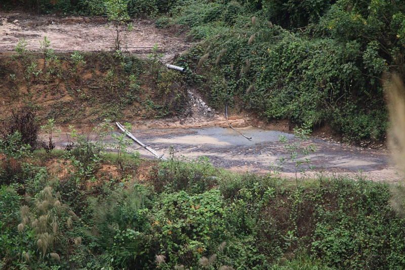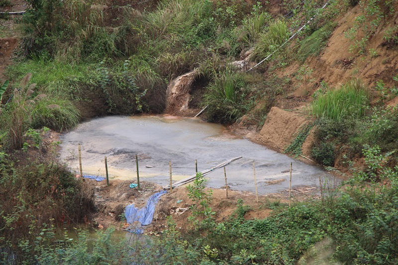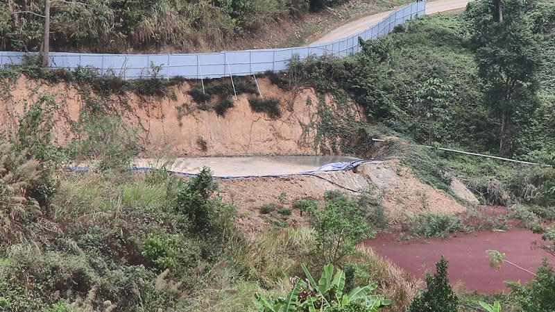 Một ao chứa bã thải được tập kết trong hành lang bảo vệ lòng hồ thuỷ điện.