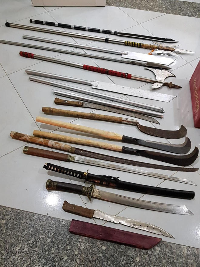 Ngay lập tức, đơn vị tuần tra đã đưa toàn bộ số đối tượng cùng tang vật về trụ sở công an phường Bửu Long để làm việc. Qua đấu tranh sơ bộ, các đối tượng khai nhận, trước đó băng nhóm này được một đối tượng tên S (chưa rõ lai lịch) rủ đi giải quyết mâu thuẫn với băng nhóm Khánh "Mèo” tại phường Long Bình nên đã dùng mạng xã hội rủ nhau tập hợp lực lượng, chuẩn bị hung khí để giải quyết mâu thuẫn.