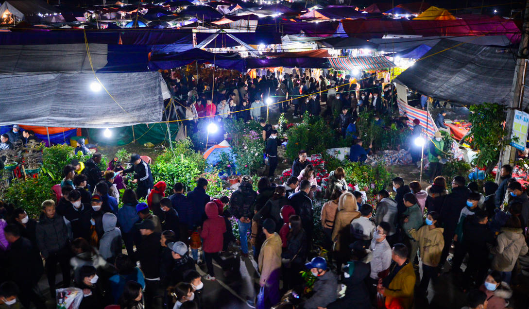 Từ đêm 28 rạng sáng ngày 29/1 chợ Viềng đã ken đặc người mua bán.