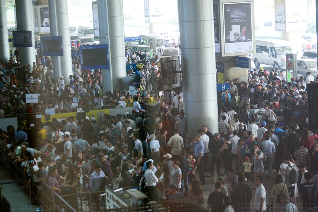 Lượng người đổ về sân bay ngày càng đông khiến không khí nóng bức, ngột ngạt.