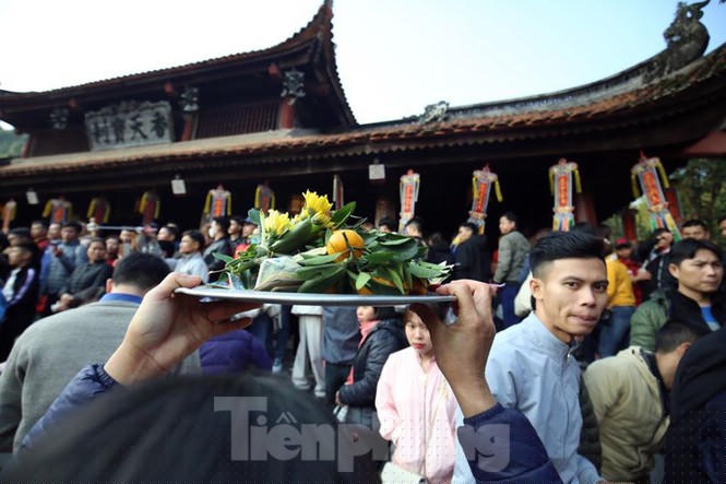 Sáng 30/1, thời tiết tại Hương Sơn se lạnh, trời quang có nắng, dòng người hàng vạn du khách nối tiếp nhau lên chùa vãn cảnh, trẩy hội xuân.