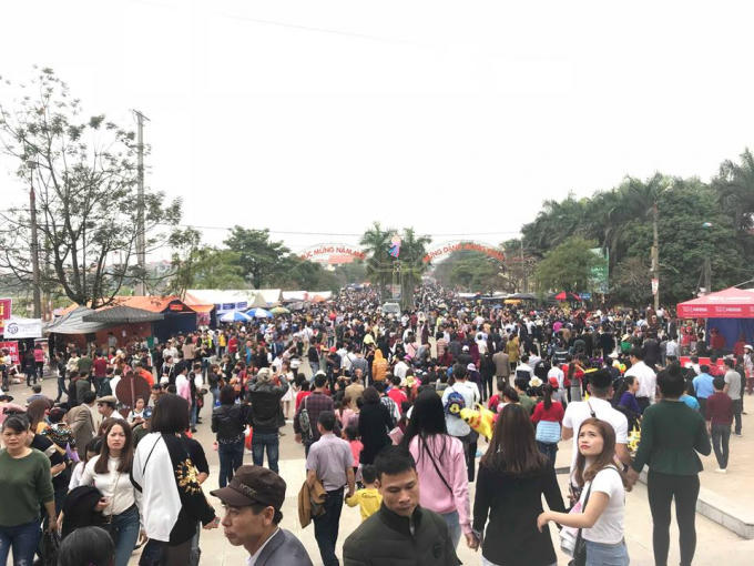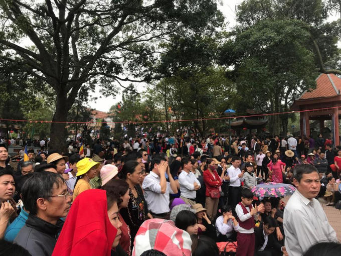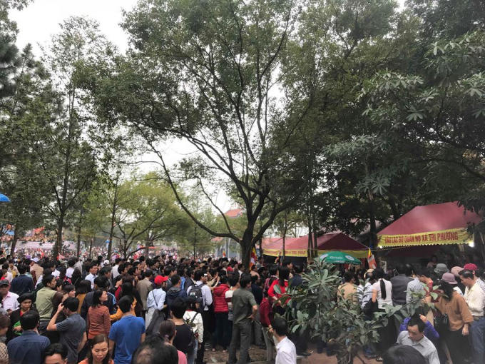 Hôm nay, ngày 13 tháng Giêng (tức ngày 28/2/2018) là ngày khai mạc chính hội nên có khá đông người dân từ các địa phương về trẩy hội.