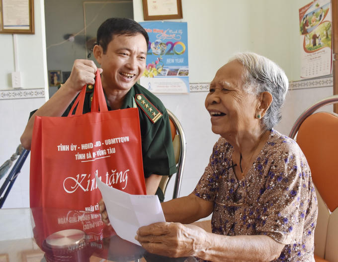 Được Đồn Biên phòng Chí Linh hỗ trợ 20kg gạo/tháng, ông Dương Văn Vui (72 tuổi, người già neo đơn ở khu Trại Nhái, phường 12, TP Vũng Tàu) nói: “Cảnh già neo đơn, không có sức khỏe để lao động nữa, nay được mấy chú bộ đội đến thăm, cho gạo thường xuyên khiến tôi rất cảm động và biết ơn”.