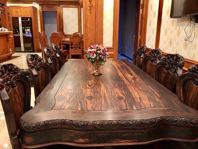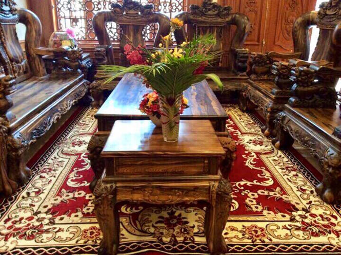 Toàn bộ nội thất trong nhà được làm bằng đồ gỗ xịn với những đường nét chạm khắc tỉ mỉ, công phu.