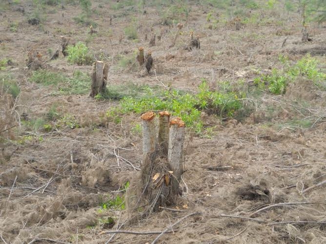 | Nhiều hecta rừng dương tại TK 281B bị chặt trụi, triệt hạ tận gốc. |