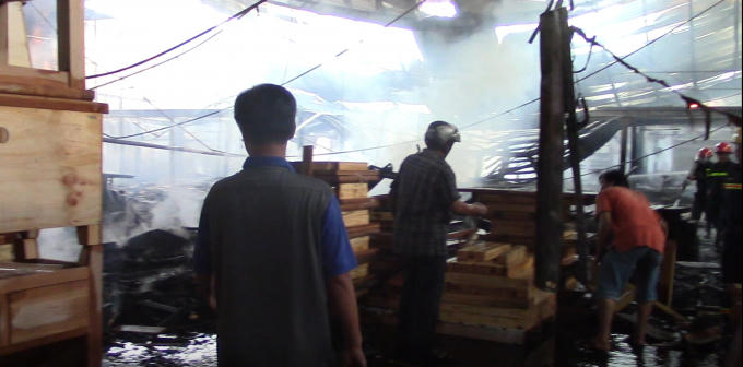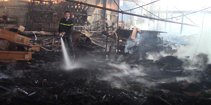 Ngay lập tức, các công nhân cùng bảo vệ đã dùng biện pháp chữa cháy tại chỗ nhưng bất thành do xưởng chứa toàn đồ gỗ. Ngọn lửa đã nhanh chóng lan ra trong khu nhà xưởng rộng khoảng 2000m2.