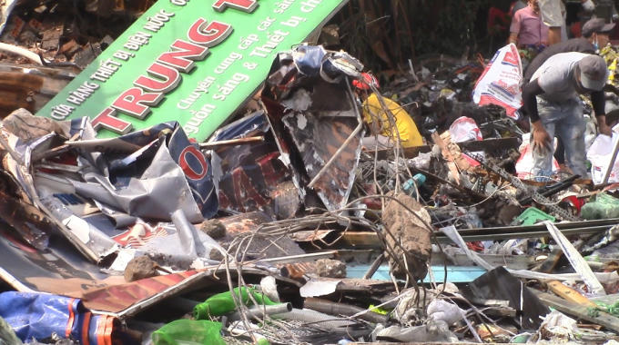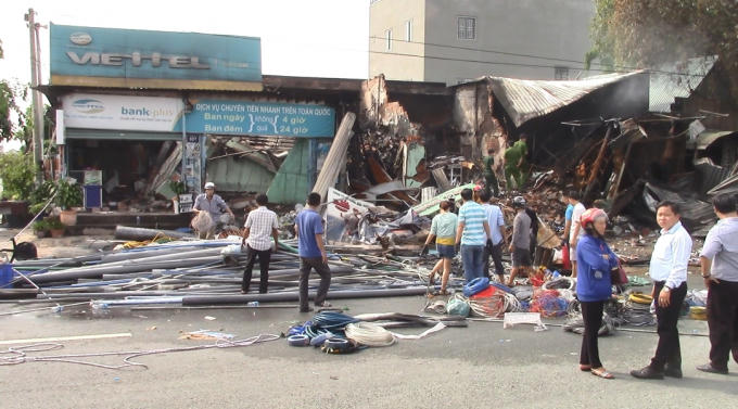 Lực lượng chức năng đã huy động nhiều xe chữa cháy và hàng chục cán bộ chiến sĩ tới hiện trường. Sau 2h nỗ lực, đám cháy đã được khống chế. Tại hiện trường nhiều đồ dùng bị thiêu rụi, hai ki ốt bị đổ sập. Một người tử vong được xác định là anh Phạm Thế Huỳnh (sinh 1983, quê Tiền Giang)