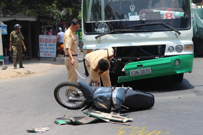 Khi đến ngã 3 gần KTX khu A ĐHQG TP HCM thì va chạm với xe buýt số 8 BKS 53N-3835 (chạy tuyến ĐHQG - Bến xe quận 8) do tài xế Vũ Viết Lộc điều khiển.
