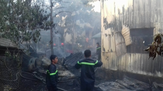 | Ngọn lửa đã thiêu rụi toàn bộ xưởng may thêu. |