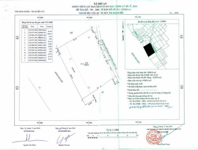 Bản đồ Khu đất nhà bà Phạm Mai Hoa tại âp Phú Thứ, xã Phú An, TX Bến Cát, tỉnh Bình Dương.