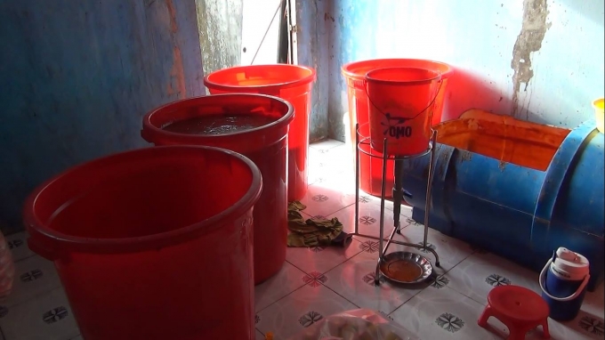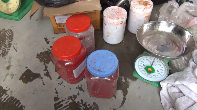 | Nguyên liệu không rõ nguồn gốc được đựng trong các tải để chuẩn bị cho quá trình pha chế. |