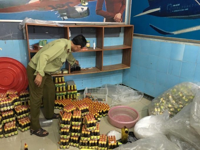 Tại đây, chủ cơ sở khai nhận tên Trịnh Thị Nga sinh năm 1989 quê Thanh Hóa. Cơ sở sản xuất không xuất trình được giấy phép kinh doanh, giấy đăng kí an toàn vệ sinh thực phẩm.