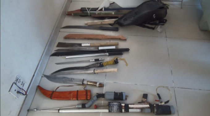 Lực lượng chức năng đã tạm giữ hành chính 21 đối tượng và thu giữ nhiều tang vật gồm: Súng tự chế, dao, mã tấu, cây gậy, đặc biệt là thu giữ 02 quả lựu đạn và một số chất nghi là ma múy. Qua test nhanh, phát hiện 9 trong 21 đối tượng dương tính với chất ma túy.