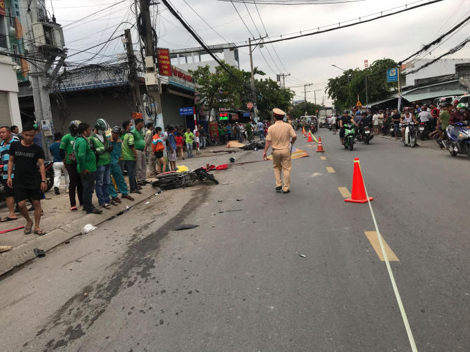 Đến chiều 8/10, Công an TP Dĩ An, tỉnh Bình Dương đã khám nghiệm xong hiện trường vụ xe ô tô 7 chỗ tông 2 xe máy làm 2 người chết.