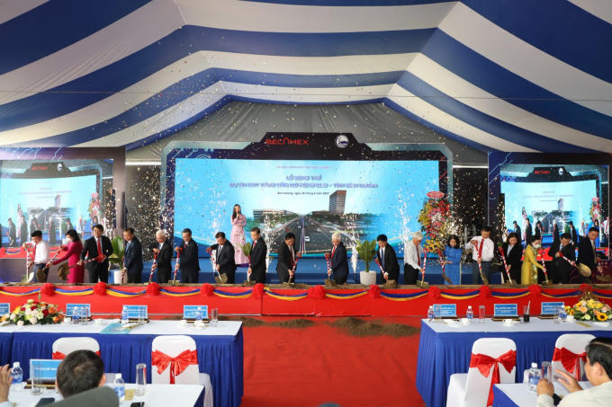(Lãnh đạo tỉnh Bình Dương và các đại biểu thực hiện nghi thức khởi công quốc lộ 13 ngày 26-4. Nguồn: Bá Sơn)