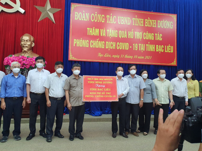 Thay mặt lãnh đạo Tỉnh ủy, HĐND, UBND tỉnh tỉnh Bình Dương, Chủ tịch UBND tỉnh tỉnh Bình Dương Võ Văn Minh trao tặng tỉnh Bạc Liêu số tiền 3 tỷ đồng, cũng như cam kết hỗ trợ thêm nhiều trang thiết bị y tế để hỗ trợ tỉnh Bạc Liêu trong công tác phòng, chống dịch Covid-19 trong thời gian tới.