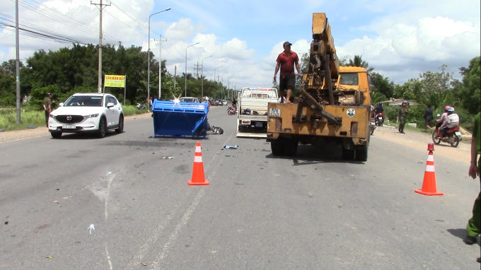 Vụ tai nạn khiến 2 người ngồi trên xe tải mang BKS: 60C- 305.10 và tài xế xe ba gác tử vong tại chỗ. Riêng 1 người ngồi trên xe tải đang dừng đỗ bên đường may mắn chỉ bị xây xát nhẹ.