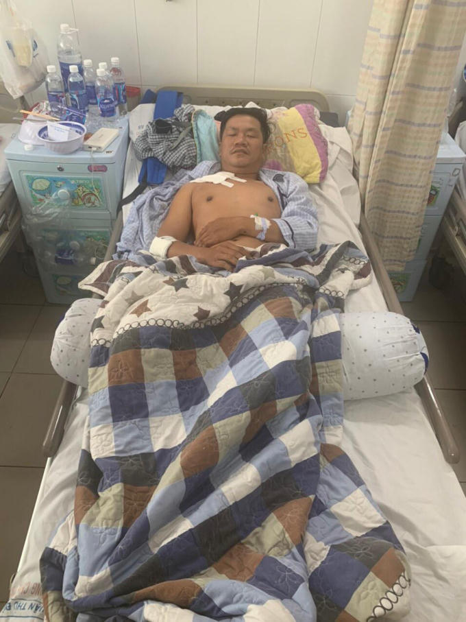 "Hiệp sĩ" Lê Văn Nguyên đang được điều trị tại Bệnh viện Đa khoa Thủ Đức.